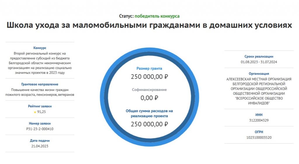 Наш проект "Школа ухода за маломобильными гражданами в домашних условиях" стал победителем конкурса на предоставление субсидий из бюджета Белгородской области некоммерческим организациям на реализацию социально значимых проектов.